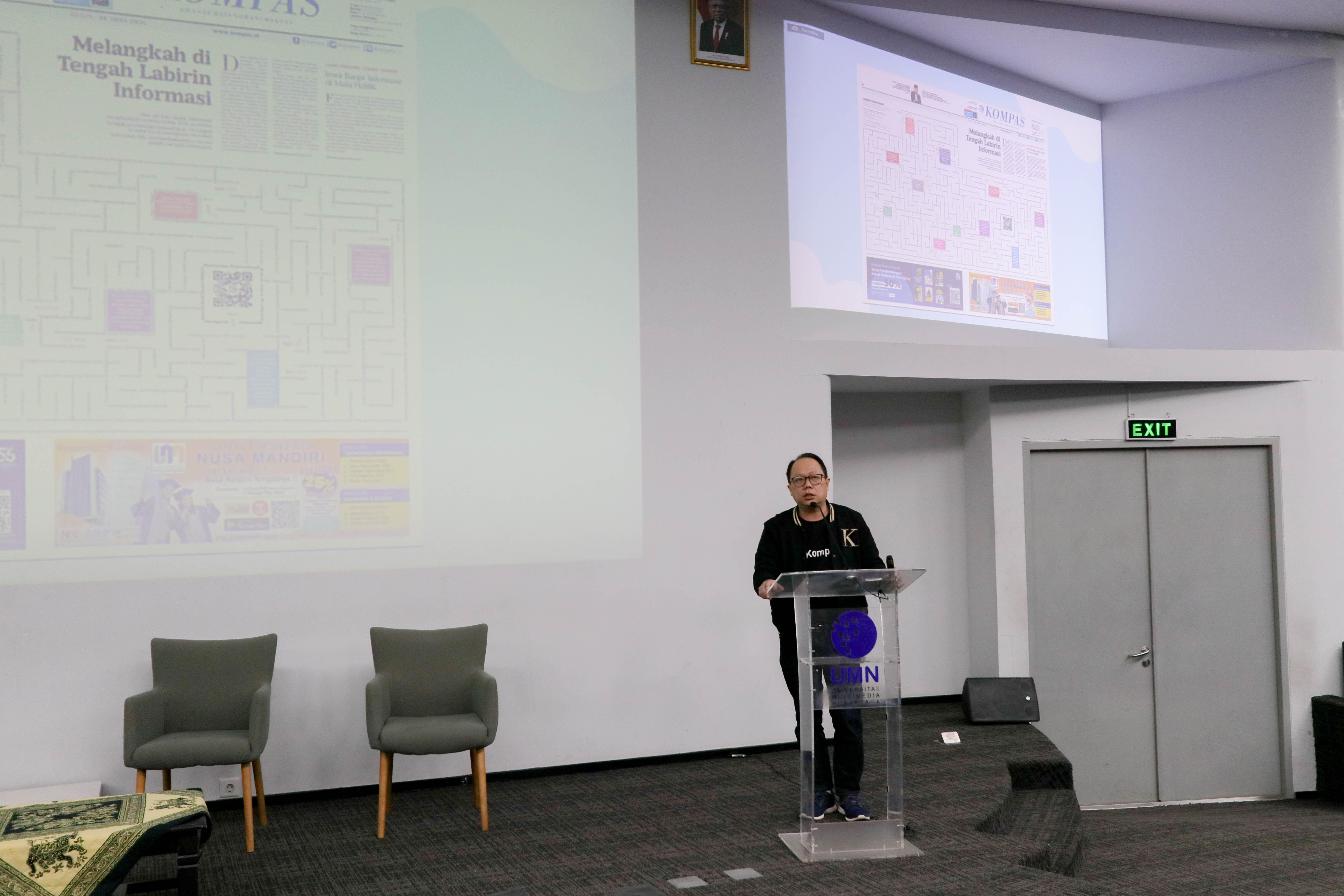 Sutta Dharmasaputra saat menyampaikan materi di literasi digital: labirin informasi tersesat atau melesat. (dok. UMN)