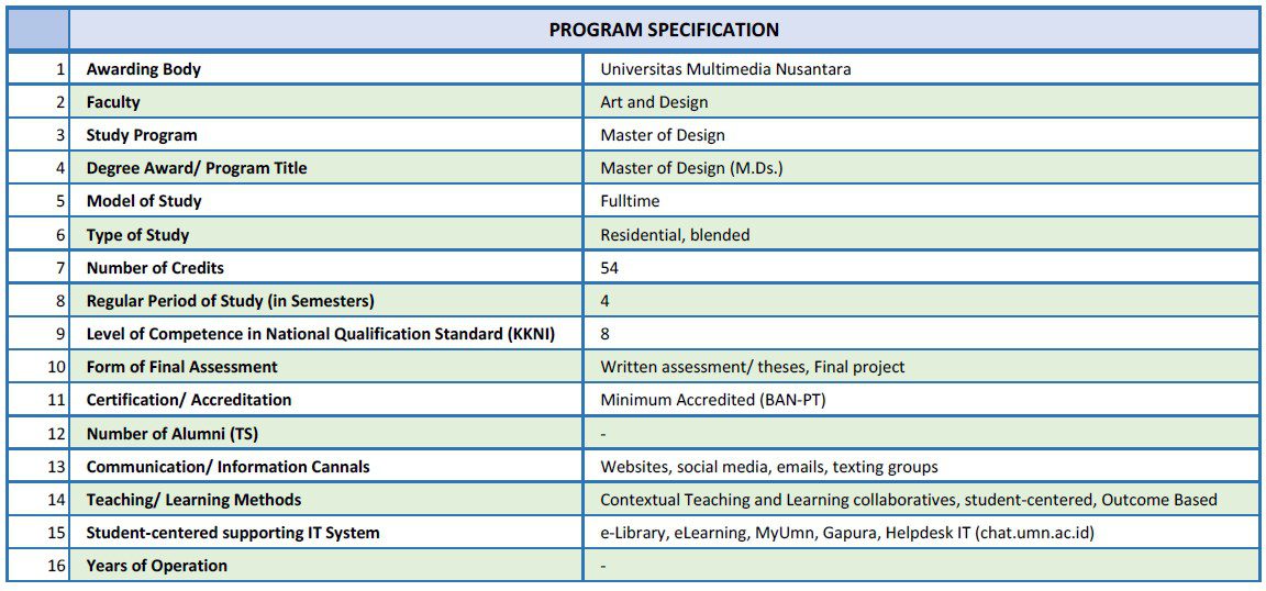 Dengan semangat kewirausahaan, kepemimpinan kreatif, dan karakter yang beretika, lulusan Magister Desain UMN siap menjadi profesional unggul yang mampu bersaing di industri kreatif nasional maupun internasional.
