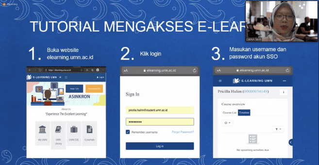 Biro Pengembangan dan Pembelajaran UMN, Diana Megawati saat menjelaskan tutorial penggunaan E-learning UMN (Dok. UMN)