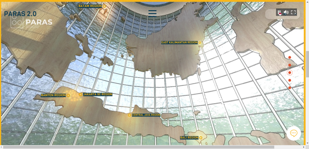Zahra menjelaskan perbedaan PARAS dengan tahun lalu, bahwa pameran tahun ini lebih ditekankan pada pengalaman platform website dan 360° virtual tour yang lebih baik sesuai dengan tema acara. Divisualisasikan dengan peta Indonesia sebagai base pengunjung berKelana.