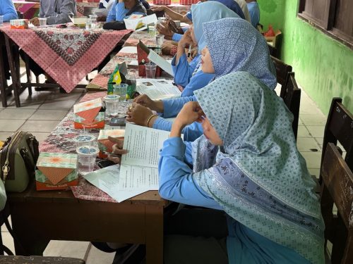 Guru-Guru membaca “Modul Siaga Bencana Alam” (Dok. Lian Marella Cahyadi)