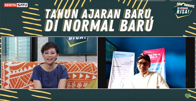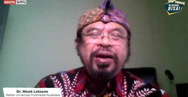 TANGERANG – Kegiatan belajar mengajar harus terus berjalan di era pandemi COVID-19, tetapi juga tidak melupakan keamanan setiap orang. Hal tersebut disampaikan oleh Rektor Universitas Multimedia Nusantara (UMN) Ninok Leksono saat menjadi narasumber dalam acara “Di New Normal, Bisa!: Tahun Ajaran Baru di Normal Baru” pada Jumat (12/6). Acara ini disiarkan secara langsung oleh Berita Satu (via Youtube, Twitter, Facebook) dan dipandu oleh Chakry Miller.