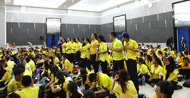 OMB hari kedua yang dilaksanakan pada Selasa (23/8) diwarnai dengan keceriaan. Dimulai dari baju yang dikenakan para MABA melambangkan warna dari fakultas masing-masing. Fakultas Teknik dan Informatika dengan warna oranye, Fakultas Bisnis dengan warna abu-abu, Fakultas Ilmu Komunikasi dengan warna kuning, dan Fakultas Seni dan Desain dengan warna hitam.