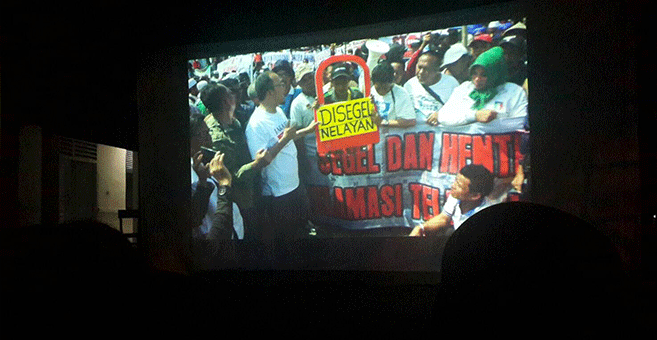 “Saya lahir di Ancol. Dipindahkan ke Muara Karang. Dipindahkan ke Muara Angke. Sekarang mau dipindahkan lagi. Saya ini manusia,” protes seorang ibu sebagaimana ditampilkan “Rayuan Pulau Palsu.”