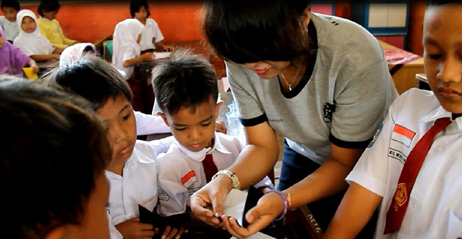 Para peserta mengikuti penyuluhan dengan antusias. Mereka juga diajak untuk bermain beberapa permainan serta melakukan kesenian origami. Terakhir, siswa SDN Leuwiranji 2 ini juga masing-masing dibagikan sabun cuci tangan.