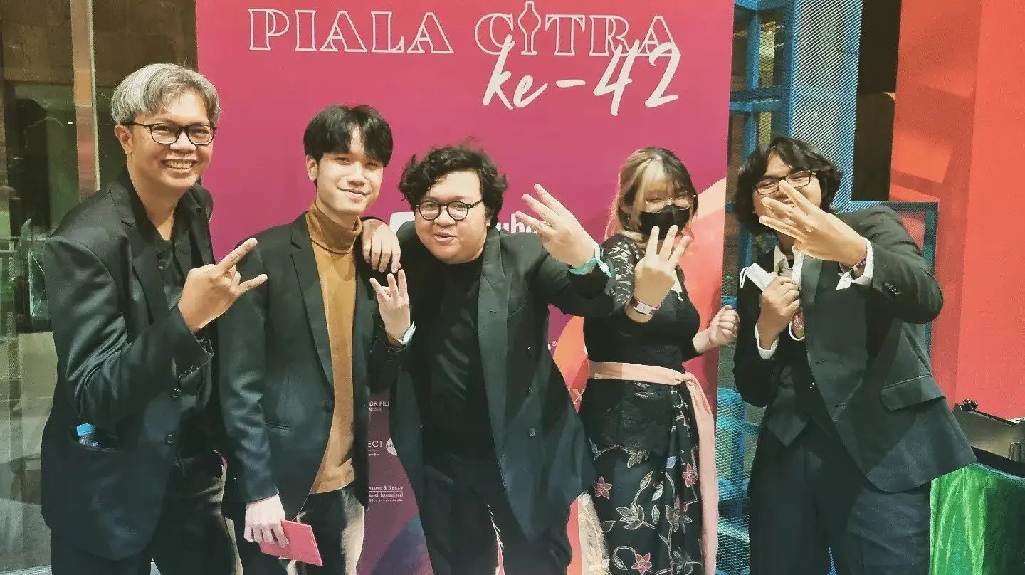Dosen Animation Production UMN, Fajar Ponco (paling kiri) bersama tim Triple Motion di FFI 2022. (dok. Faiz Azhar)