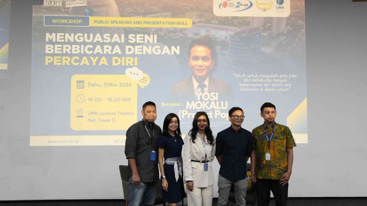 Tangerang, 13 November 2024 – Universitas Multimedia Nusantara (UMN) kembali membuat gebrakan dengan menyelenggarakan workshop inspiratif bertajuk “Menguasai Seni Berbicara dengan Percaya Diri,” bersama Yosi Mokalu, anggota grup musik komedi ProjecT Pop yang dikenal karena gaya humoris dan menginspirasi! Acara yang diadakan di UMN ini berhasil menarik perhatian banyak peserta, termasuk mahasiswa UMN serta siswa-siswi SMA Global Mandiri Cibubur. Workshop ini juga merupakan bagian dari kegiatan Pengabdian kepada Masyarakat (PKM) UMN, yang bertujuan untuk memberikan dampak positif bagi pengembangan keterampilan masyarakat, khususnya dalam bidang komunikasi.