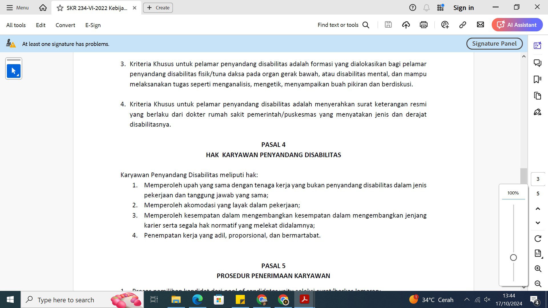 As outlined in the Rector’s Decree No. 234/SK-R/VI/2022 concerning the Employment Provisions for Employees with Disabilities at Universitas Multimedia Nusantara, Article 4 addresses the rights of employees with disabilities. Employees with disabilities have the right to receive equal wages compared to non-disabled workers for the same job, to obtain reasonable accommodations, and to have opportunities for career advancement along with related normative rights. They are also entitled to fair, proportional, and dignified employment placement.