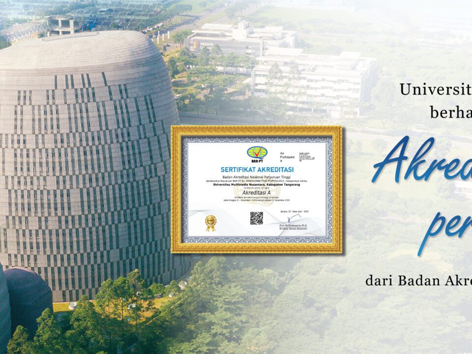 Desember 31, 2021Published by umnadmin on Desember 31, 2021Categories Berita General PrestasiUniversitas Multimedia Nusantara Kembali Meraih Akreditasi Institusi A dari BAN-PTTANGERANG – Memasuki Umur yang ke-15, Universitas Multimedia Nusantara (UMN) kembali menorehkan prestasi. Pada tanggal […]