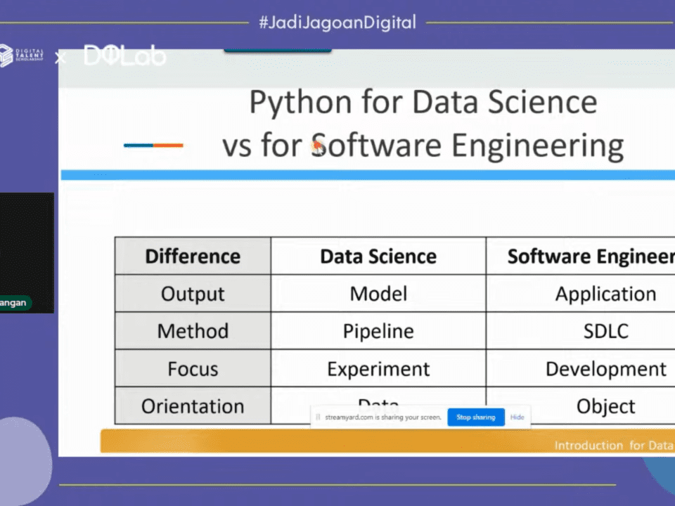 Juli 1, 2022Published by umnadmin on Juli 1, 2022Categories Berita DQLab GeneralRahasia Belajar Python untuk Menjadi Praktisi Data PemulaData team terdiri dari Data Scientist, Data Analyst dan Data Engineer. Dari ketiga profesi tersebut, […]