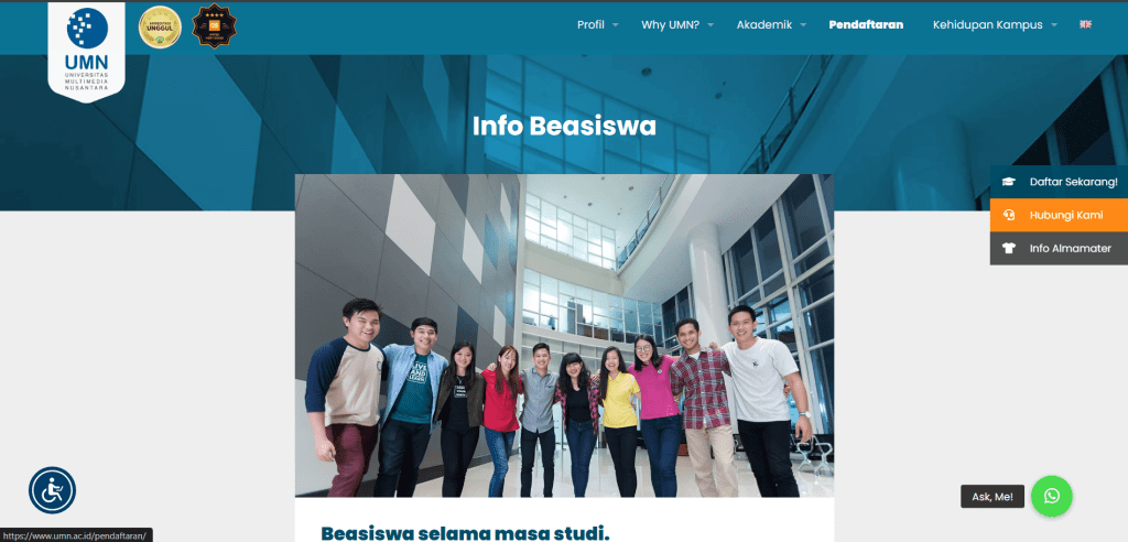 Juni 23, 2025Published by salsa on Juni 23, 2025Categories GeneralKuliah di Kampus Swasta Tak Harus Mahal: Ada Beasiswa Yang Bisa DigunakanPerpustakaan UMN (Sumber: umn.my.id) Kualitas pendidikan di kampus swasta tidak kalah dengan negeri dan […]