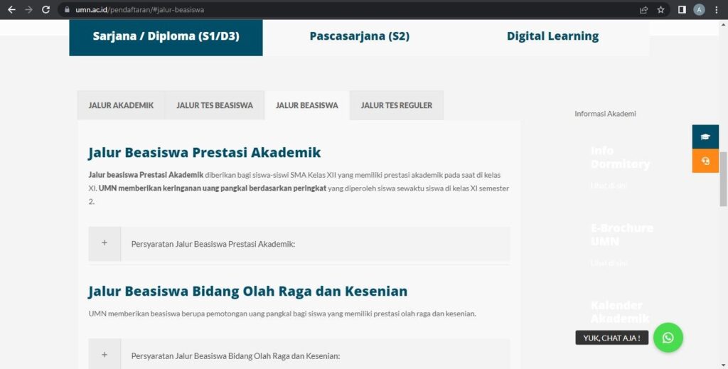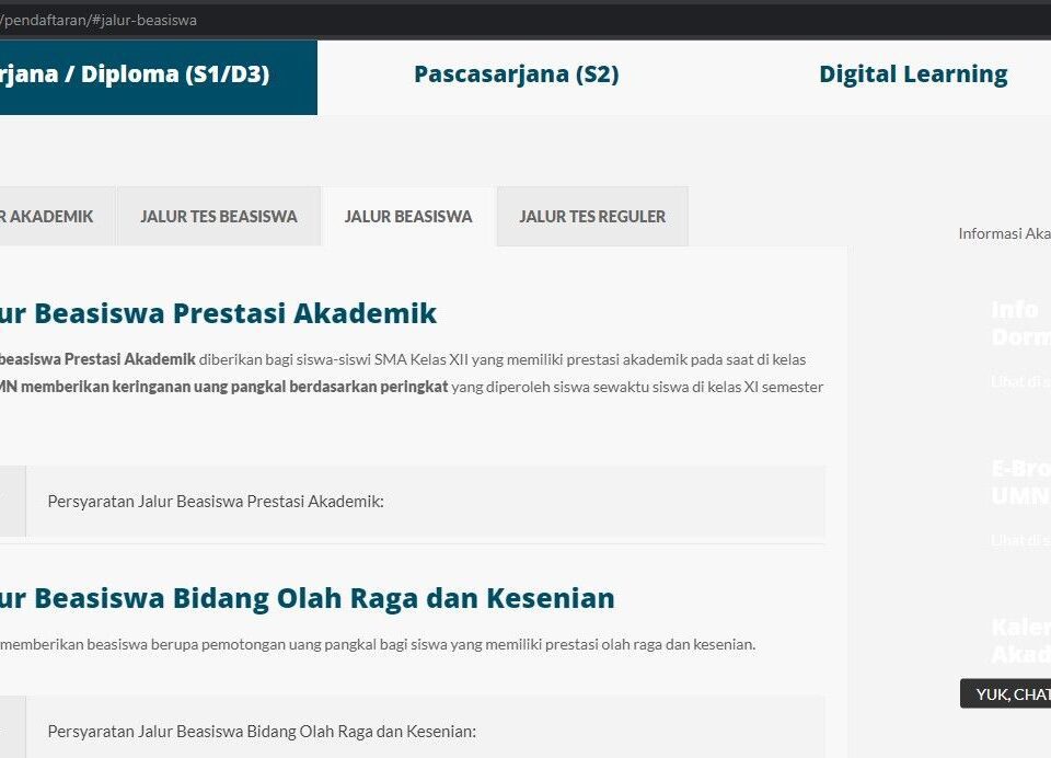 Juni 13, 2022Published by umnadmin on Juni 13, 2022Categories GeneralMau Dapat Potongan Biaya Kuliah S1? Yuk Simak Informasi Program Beasiswa UMNHalaman website informasi program beasiswa UMN. (dok. UMN) Program Beasiswa S1 (strata 1) di Universitas […]