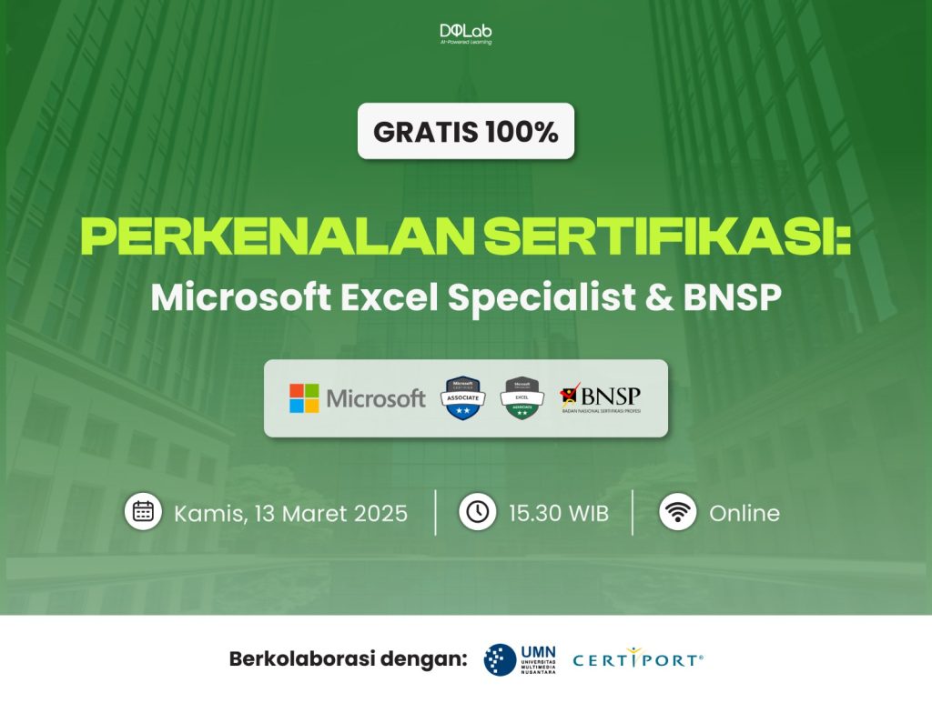 Maret 3, 2025Published by Rachel on Maret 3, 2025Categories Berita DQLab GeneralPersiapkan Diri untuk Sertifikasi BNSP dan Microsoft Excel dengan Kelas Perkenalan Gratis dari DQLabTangerang [03/03/2025] – Dalam era digital saat ini, penguasaan keterampilan analisis data menjadi kunci bagi […]