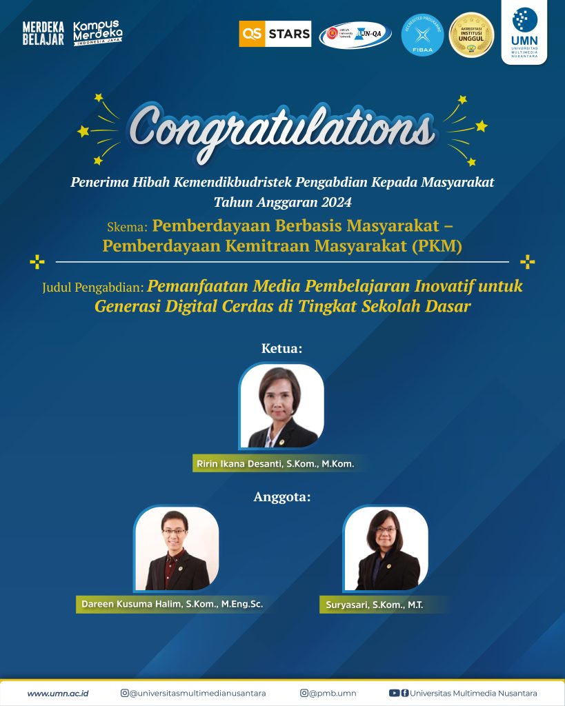 Juli 30, 2024Published by umnadmin2 on Juli 30, 2024Categories Berita General informatika Sistem Komputer sisteminformasi Teknik KomputerDua Tim Peneliti UMN Mendapat Dana Hibah untuk Program PKM 2024TANGERANG – Tim peneliti dosen UMN menerima dana hibah untuk program Pengabdian kepada Masyarakat Tahap […]