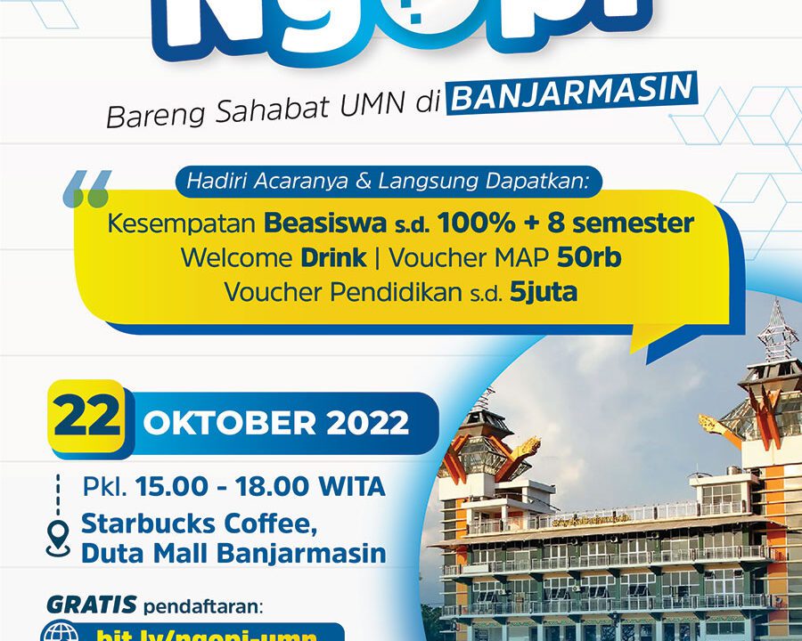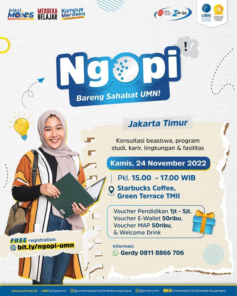 November 21, 2022Published by umnadmin on November 21, 2022Categories Ngopi Bareng Sahabat UMN di Jakarta Timur – 24 November 2022📣 Sahabat UMN Jakarta Timur mana suaranya?🙋🏻♀️🙋🏻♂️ UMN akan mengadakan ngopi bareng Sahabat UMN dan […]