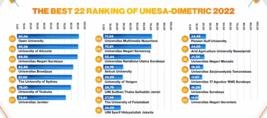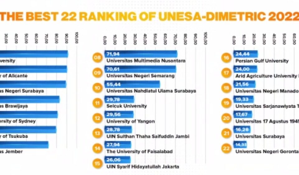 Januari 2, 2023Published by umnadmin on Januari 2, 2023Categories Berita GeneralUMN Masuk Daftar Kampus Ramah Penyandang Disabilitas Versi Unesa-DimetricTANGERANG – UMN berhasil meraih peringkat ke-8 dari 125 perguruan tinggi di dunia sebagai kampus […]