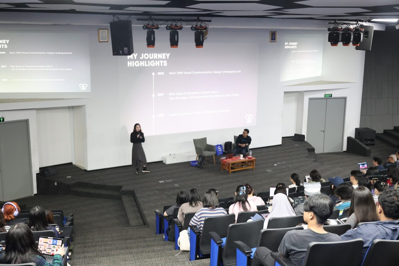 Tangerang, (25/03/2026) — Program Studi Desain Komunikasi Visual (DKV) UMN melaksanakan kuliah tamu bersama Ovita Pattari yang merupakan alumni DKV UMN angkatan 2015. Pada sesi ini, Ovita membagikan pengalaman dan wawasannya sebagai praktisi industri kreatif dalam kuliah tamu yang bertajuk “The Art of Touching People’s Heart”.