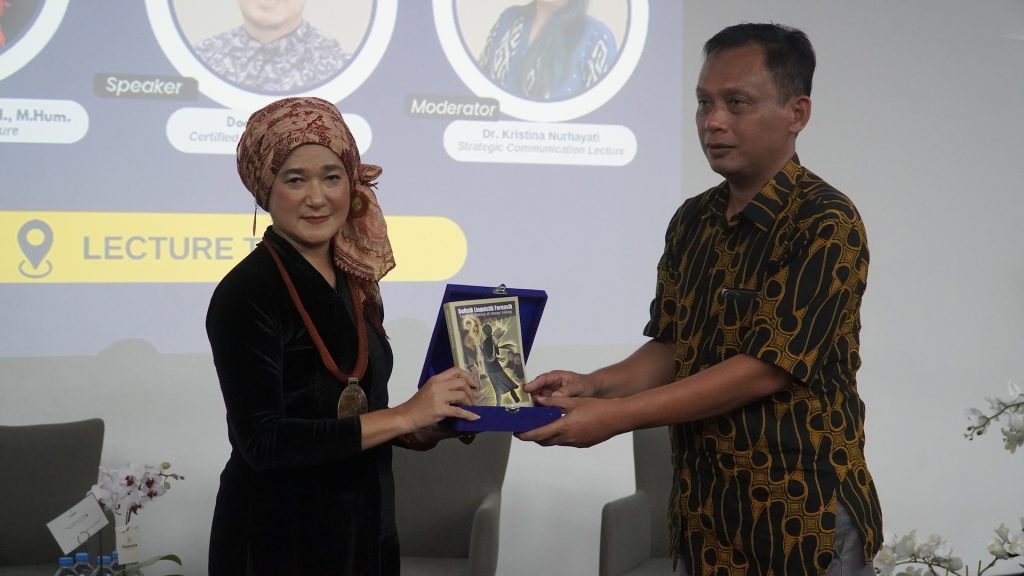 Peluncuran buku ini dilanjutkan dengan bedah buku “Selisik Linguistik Forensik: Menjadi Bintang di Ruang Sidang” karya Dr. Niknik Mediyawati, S.Pd., M.Hum., dan buku “Beyond Borders: Communicating Global Brands In The Digital Age.” karya Dr. Arsa Widitiarsa Utoyo., dan Dr. Agustinus Rusdianto Berto, S.Sos., M.Si.