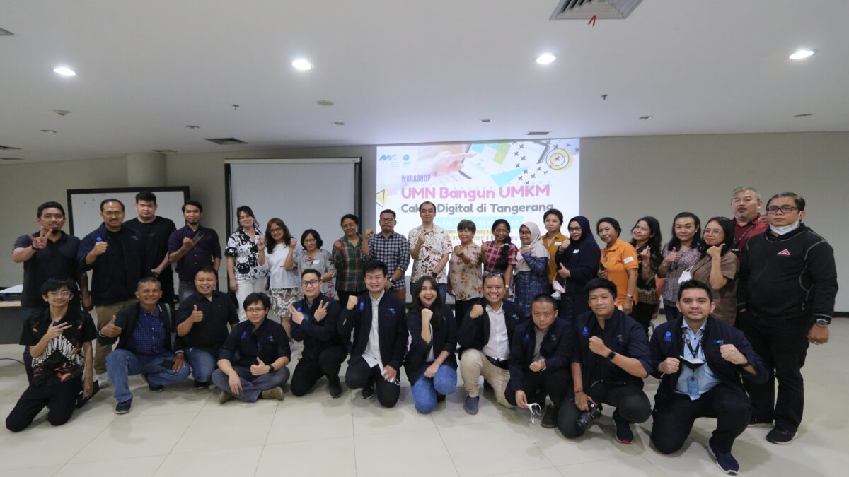 Foto bersama workshop UMN Bangun UMKM Cakap Digital di Tangerang. (Dok. UMN)
