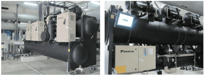 Magnetic Chiller with high energy efficiency and three compressors equipped with Variable Frequency Drive (VFD) for optimized performance.