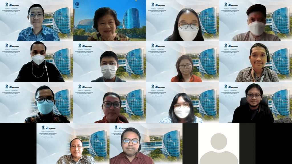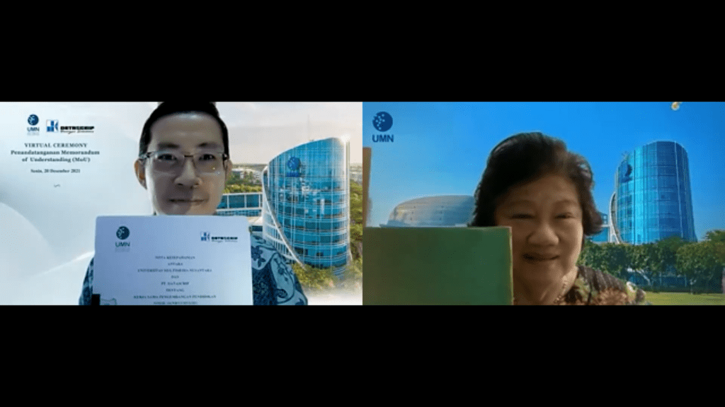 TANGERANG – Universitas Multimedia Nusantara dan PT Datascrip meneken nota kesepahaman (MoU) yang dilaksanakan secara virtual pada Senin (20/12/21). Kerja sama ini bertujuan untuk mensinergikan antara sumber daya manusia dan teknologi yang berkualitas. Hal tersebut menyangkut peningkatan kapabilitas mahasiswa UMN melalui pemanfaatan teknologi yang ditawarkan oleh PT Datascrip.