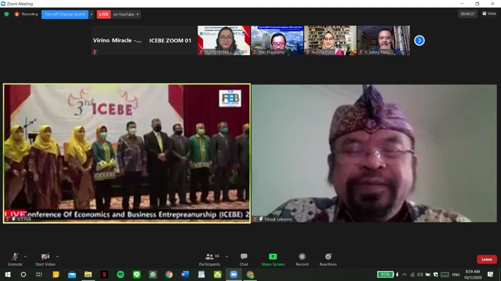 “…When we talk about economy and business, what we feel today is a deep sadness, while in the old normal we have always been enthusiastic to talk about the subject, now we see much devastation in both economic and businesses. Yet we still have the third element, and that is entrepreneurship. Entrepreneurship should become our strength for inherently the true meaning of entrepreneurship is the ability to pioneered a business and to make it strong to open visibility for new business and resilience to respond to the challenges,” ucap Dr. Ninok Leksono M.A. turut membuka konferensi ini.