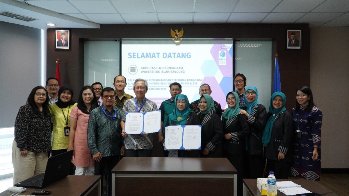 Tangerang – Universitas Multimedia Nusantara (UMN) dengan hangat menyambut kedatangan Universitas Islam Bandung (Unisba) dalam forum diskusi yang memfokuskan pada pembahasan Fakultas Ilmu Komunikasi antara kedua kampus. Selain itu, momen tersebut juga ditandai dengan penandatanganan Memorandum of Understanding (MoU) sebagai kesepakatan kerja sama Tri Dharma.