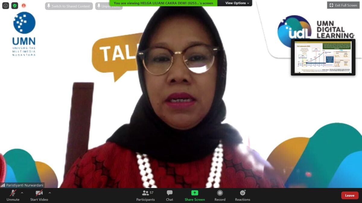 Sekretaris Direktorat Jenderal Pendidikan Tinggi Paristiyanti Nurwardani selaku narasumber sedang memaparkan materinya pada Senin (28/09/2020). (dok.UMN)