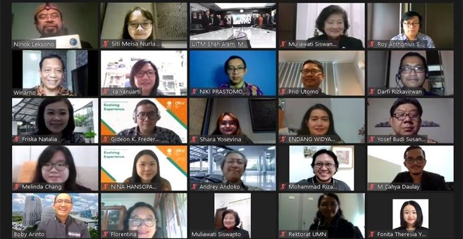 TANGERANG – Universitas Multimedia Nusantara (UMN) bersama Universiti Teknologi MARA (UiTM) Malaysia mengadakan Nota Kesepahaman (MoU) kerja sama secara berani, Kamis (2/7). Penandatanganan yang dilakukan melalui Zoom ini dipandu oleh Global Relations and Coorperations Office, Boby Arinto dan disaksikan oleh jajaran rektorat, dekan, dan staf, baik dari UMN maupun UiTM.