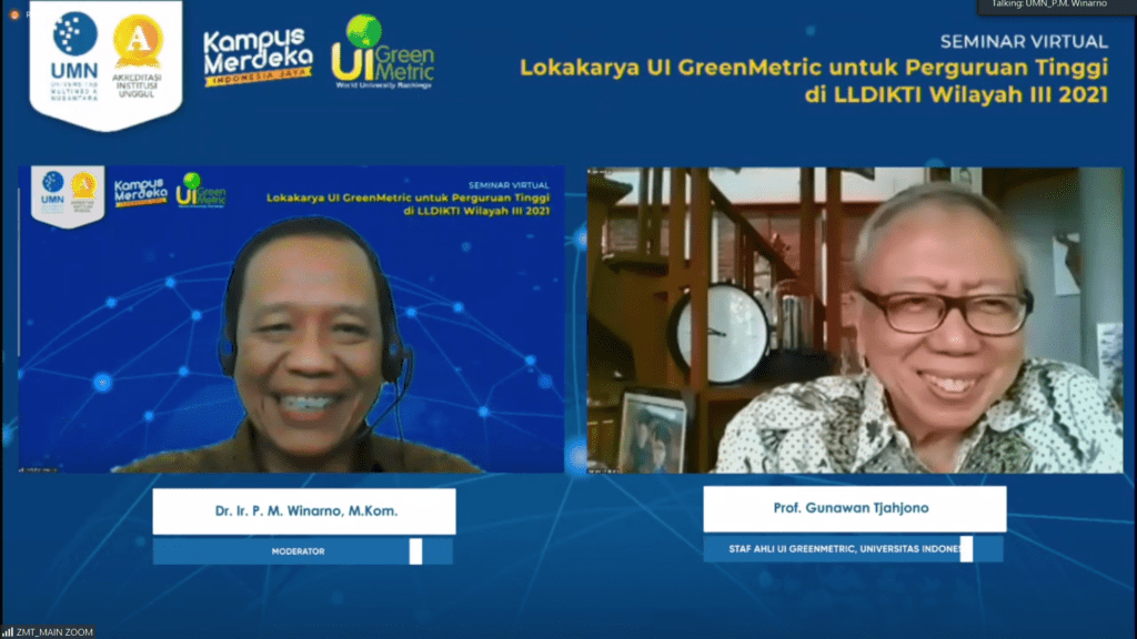 Staf Ahli UI Greenmetric Universitas Indonesia, Prof. Gunawan Tjahjono (kanan) dan Moderator, Dr. Ir. P. M. Winarno, M. Kom. (kiri) (dok. UMN)