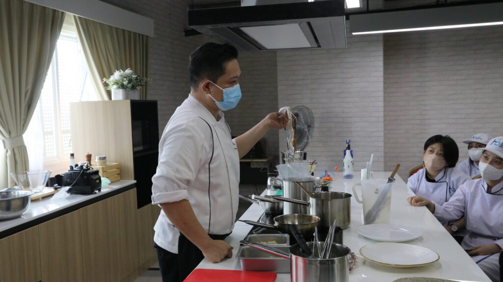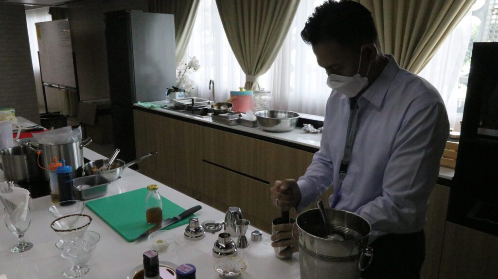 TANGERANG – Memperkenalkan kembali Indonesian food dan Indonesian drinks, Fakultas Perhotelan Universitas Multimedia Nusantara (UMN) bersama guest lecture dari departemen Food & Beverage (F&B) Hotel Dharmawangsa Jakarta mengadakan program school visit dan demonstrasi. Acara ini diadakan di Gedung D fakultas perhotelan UMN pada Selasa (10/5/2022).