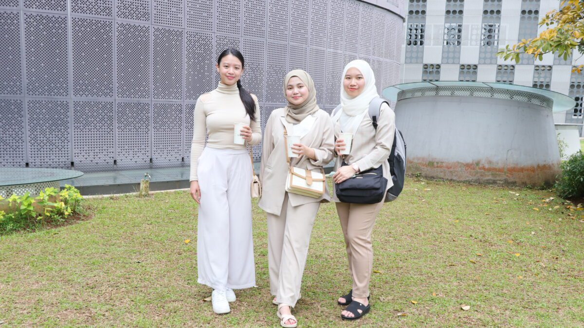 Ketiga mahasiswa Universiti of Brunei Darussalam, Michelle, Batrisyia, dan Aqilah. (dok. UMN)