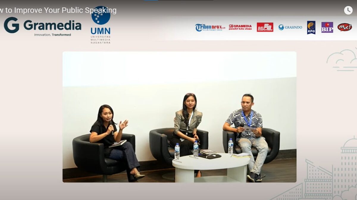 Acara ini membahas bagaimana mengasah kemampuan public speaking yang baik untuk mendukung profesi sebagai Voice Over, Host, dan Presenter. Turut mengundang pembicara Dewi Warhamni, M.I.Kom. dosen Public Speaking and Presentation Skill UMN dan Nathalie Indry Voice Over (VO) Talent and Professional Host.