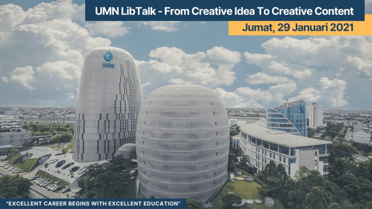 Februari 1, 2021TANGERANG – Tidak terbatas berdasarkan latar belakang pendidikannya, tetapi siapa pun bisa menjadi konten kreator. Inilah yang diutarakan oleh Sintia Astarina, seorang blogger dan content creator yang menjadi narasumber dalam talkshow UMN LibTalk “From Creative Idea to Creative Content”, di Zoom pada Jumat (29/1).