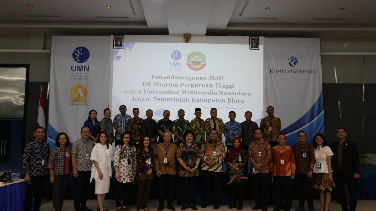 TANGERANG – Universitas Multimedia Nusantara (UMN) dan Pemerintah Kabupaten Blora menandatangani Memorandum of Understanding (MoU) Tri Dharma Perguruan Tinggi pada Selasa (18/10/22). Penandatanganan ini dihadiri oleh sekelompok representatif dari UMN dan Pemerintah Kab. Blora di kampus UMN.