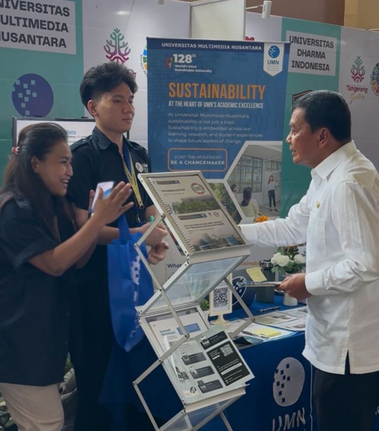 Selain pemaparan makalah, UMN juga menghadirkan booth pameran yang menampilkan praktik keberlanjutan berbasis CORE. Pameran ini menjadi etalase kontribusi UMN dalam tridharma perguruan tinggi yang terintegrasi dengan operasional hijau dan kemitraan multipihak, serta menunjukkan komitmen UMN dalam mendukung agenda keberlanjutan Kabupaten Tangerang.