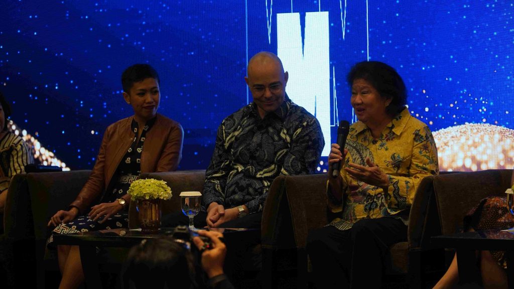 Muliawati G. Siswanto, M.Eng.Sc. selaku Wakil Rektor Bidang Hubungan dan Kerjasama UMN (paling kanan), memberikan sambutannya dalam konferensi pers. (Dok. Marketing Communications UMN)