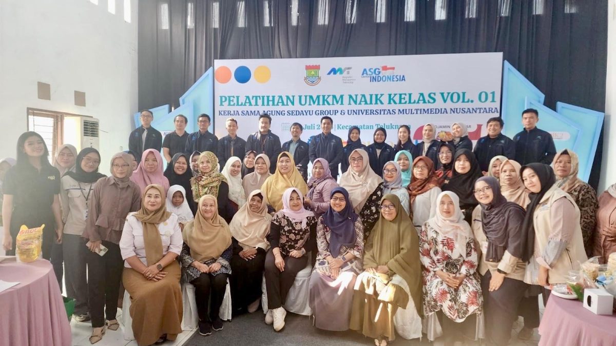 (Sesi foto bersama dalam acara pelatihan UMKM di Teluk Naga. Dok. UMN)
