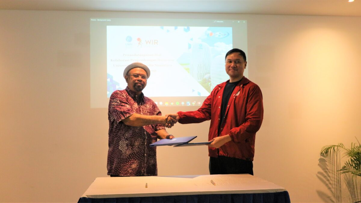 Tangerang, 1 April 2022 – Universitas Multimedia Nusantara (UMN) berkolaborasi dengan WIR Group perusahaan teknologi berbasis Augmented Reality (AR), untuk mengembangkan platform teknologi metaverse dan membangun sumber daya manusia di bidang teknologi yang unggul dan kompetitif. Nota kesepahaman kerja sama ditandatangani oleh Rektor Universitas Multimedia Nusantara Dr. Ninok Leksono, M.Sc dan Chief Marketing Officer WIR Group, Gupta Sitorus, di Kampus UMN, Serpong, Tangerang, Jumat (1/4).