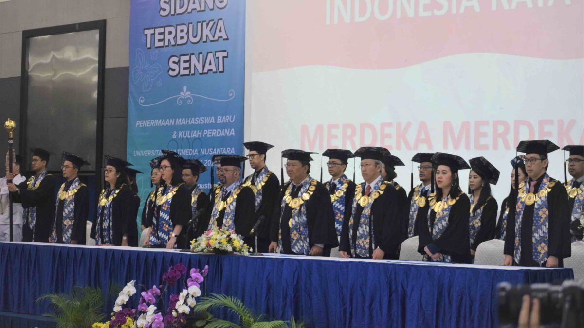 Tangerang – Universitas Multimedia Nusantara mengadakan Sidang Terbuka Senat Penerimaan Mahasiswa Baru dan Kuliah Perdana untuk menyambut Mahasiswa Baru UMN 2023 pada Jumat (25/8/2023). Kuliah ini mengajak Mahasiswa Baru 2023 untuk lebih mengenali dunia Artificial Intelligence (AI) terutama kaitannya dengan masa depan dunia kerja di era gempuran AI.