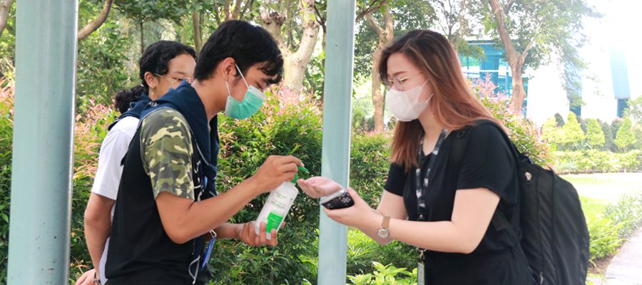Kampanye Pemberian Hand Sanitizer oleh Kemahasiswaan UMN di Lingkungan Kampus UMN (dok. UMN)