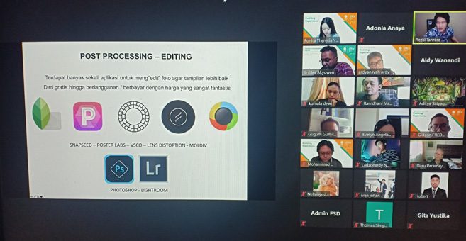 Ia juga memberikan beberapa contoh aplikasi post-processing untuk mengedit foto produk agar tampilannya lebih menarik. Rezki mengatakan bahwa ada dua hal yang sering dilakukan dalam proses pengeditan foto, yaitu memperbaiki kecerahan warna detail dan meningkatkan komposisi.