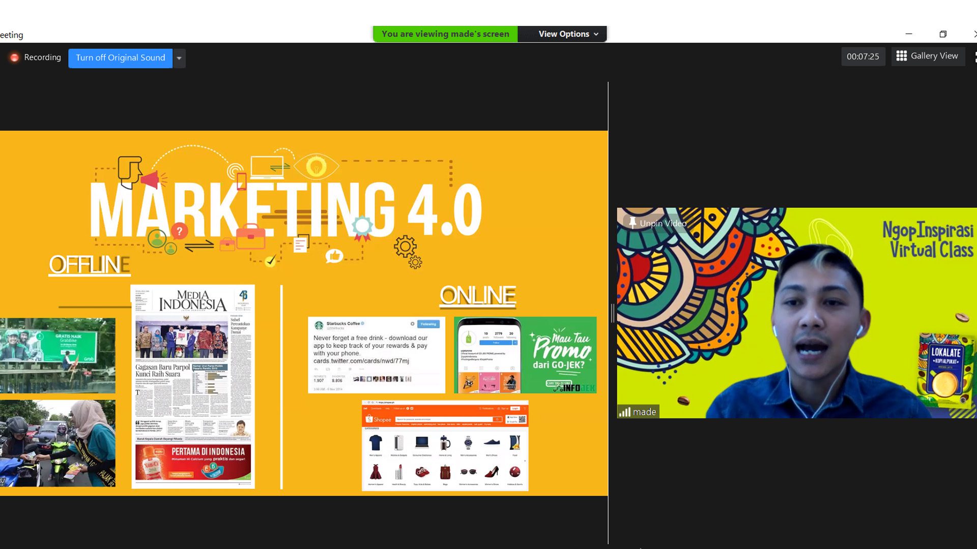 “Yang tadinya Marketing 4.0 diperkirakan akan terjadi sekitar 2 hingga 3 tahun lagi, namun dalam masa pandemi seperti saat ini, para perusahaan harus saat ini juga beralih, memanfaatkan peluang Marketing 4.0 jika tidak ingin kehilangan pasar,” kata Made.