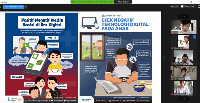 “Anda generasi Z bahkan menggunakan internet sebagai jalan hidup. Maka Anda semua disebut sebagai ‘Generasi Digital Natives’ yaitu generasi yang lahir pada zaman digital dan berinteraksi dengan peralatan digital pada usia dini,” ungkap Indiwan.