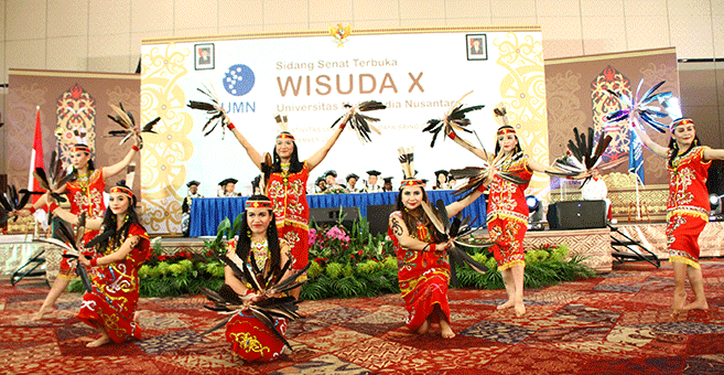 Seperti wisuda-wisuda sebelumnya, UMN selalu mengangkat tema kedaerahan dalam setiap acaranya. Kali ini, Wisuda IX memilih budaya suku Dayak dari Kalimantan sebagai ciri khasnya. Tak hanya melalui pakaian adat dan tata panggung saja yang menggambarkan budaya Dayak tetapi pemilihan lagu-lagu serta tarian Kalimantan turut menyemarakkan wisuda ini. Adapun total wisudawan dalam Wisuda X adalah 542 orang. (*)